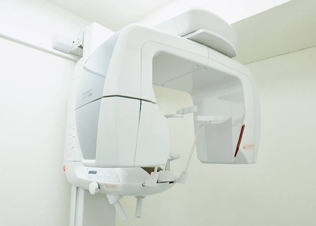 歯科用CTは、口腔内を3次元の立体画像として撮影できる機器です。従来のレントゲンでは確認が難しかった歯や顎の骨の形態、神経や血管の位置関係などを立体的に把握できます。