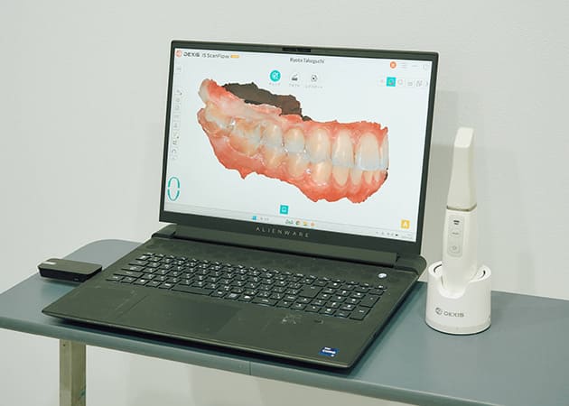DEXIS™口腔内スキャナーは、お口の中を高精度にデジタル計測できる装置です。従来の型採りのような不快感がなく、短時間で精密な3Dデータを取得できます。お口の状態を正確に把握でき、より適切な治療計画につながります。