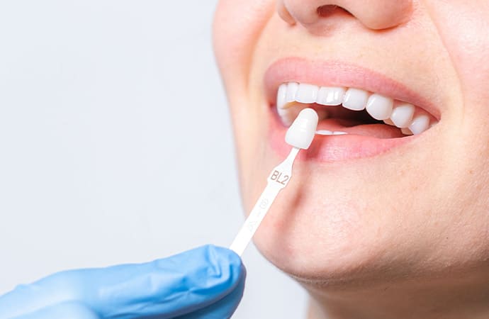 歯の表面をわずかに削り、薄いセラミック製のシェルを貼り付ける治療法です。短期間で歯を白く整えられ「前歯の色や形を整えたい」「すき間をなくしたい」「ホワイトニングで満足できなかった」などの方に適しています。診療時には、適応の有無を丁寧にご説明します。