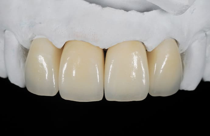 ジルコニアは「人工ダイヤモンド」と呼ばれるほど強度と耐久性に優れた素材です。割れや欠け、変色が起こりにくく、美しさを長期間保てます。不透過性が高いため、変色の強い歯でも色が透けにくく、自然で美しい仕上がりを実現できます。