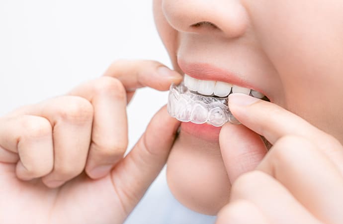 透明で取り外しが可能なアライナーを使用して歯の矯正を行います。ワイヤーなどは使用しません。 |