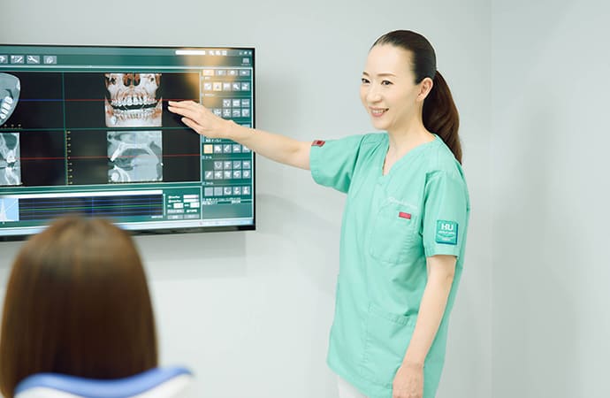 当院では、矯正歯科治療を専門的に行う歯科医師を中心に、各分野の歯科医師がチームで連携。歯の動きや顎の成長、顔全体のバランスまで考慮し、一人ひとりに合わせた治療計画をご提案します。長期的な機能性と美しさを両立する矯正歯科治療をお求めの方は、当院にご相談ください。