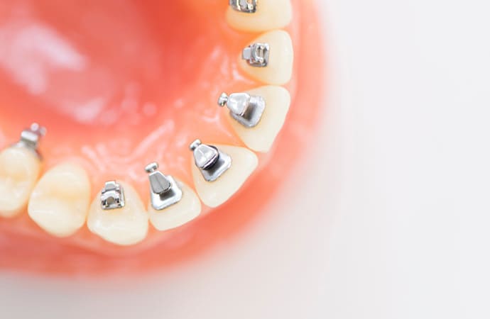 歯の裏側にブラケットを装着し、歯を動かす治療法です。表側からは装置が見えないため、治療中も目立ちにくいのが特長です。人前に出る機会が多い方や、矯正していることを知られたくない方に適しています。