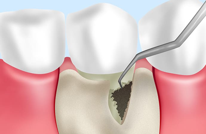 歯周外科治療では、局所麻酔後に歯茎を切開し、歯周ポケットの奥深くに付着したプラークや歯石を直接除去します。歯周病の原因を徹底的に取り除けるため、病気の進行を抑え、再発しにくい健康的な口腔環境へつなげます。