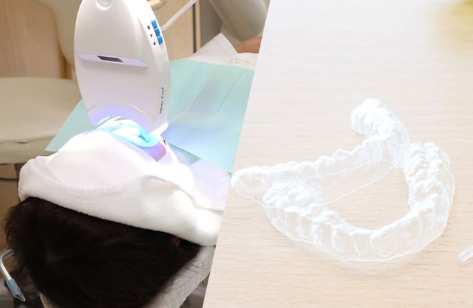 ご自宅で行うホワイトニング法です。マウスピースに薬剤を入れて装着し、少しずつ歯を白くしていきます。効果の持続性が高く、自然な白さを目指す方に適しています。